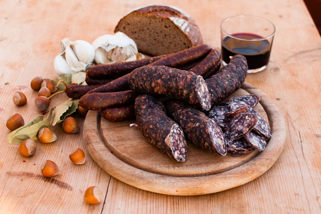 Das Wurstsortiment des Hallertauer Ziegenhofs umfasst unterschiedliche Ziegensalamis sowie niederbayerischen Bauernschinken vom Schwein.
